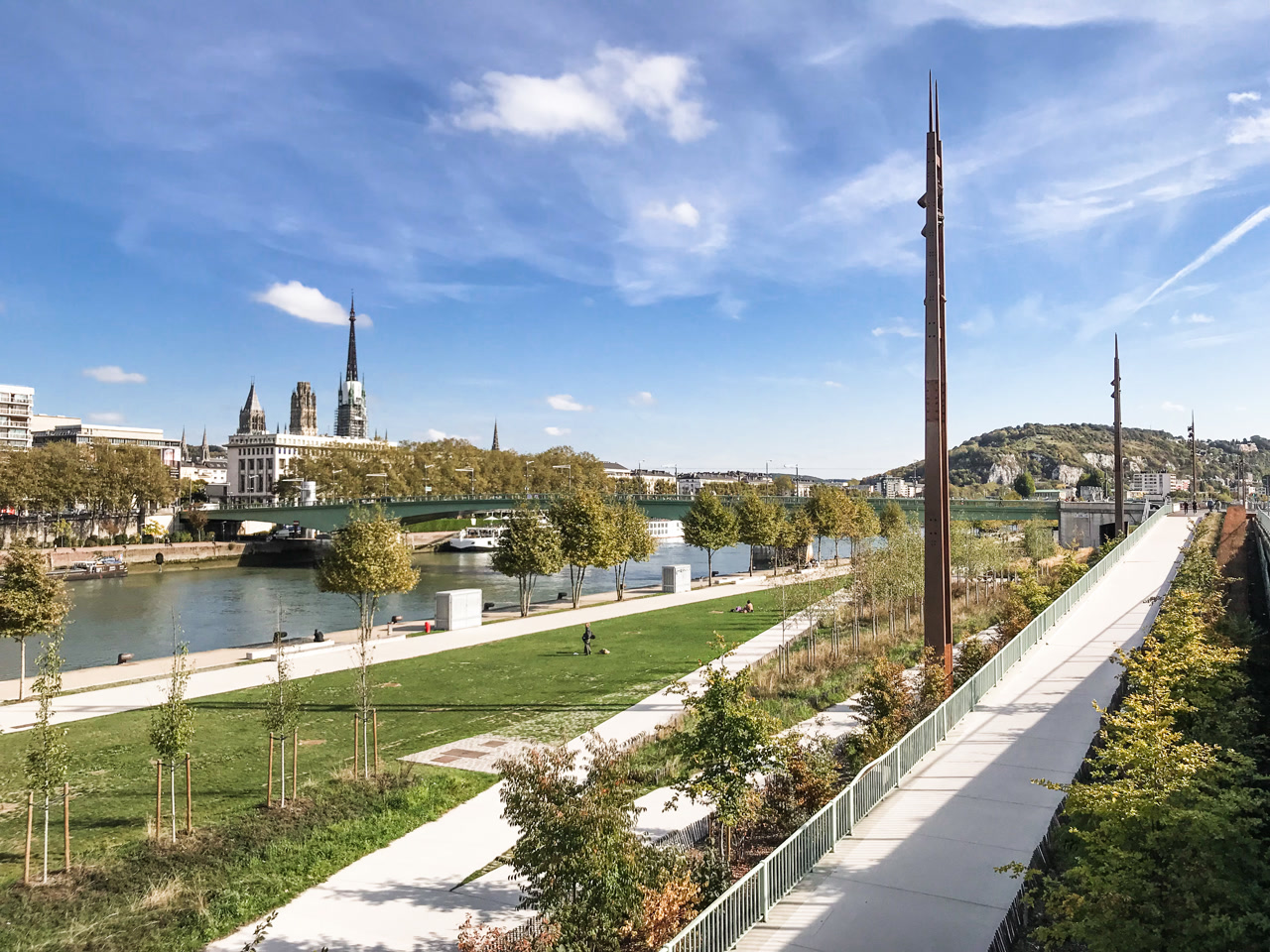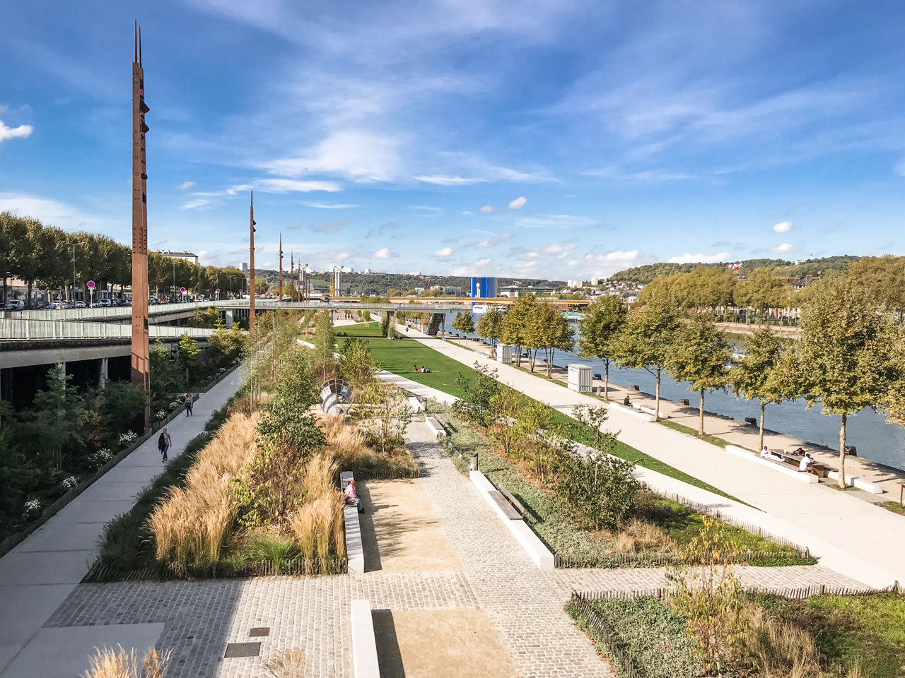 Du pont Corneille à la pointe de la presqu’île Rollet, transformée en parc urbain, les habitants et visiteurs de la Métropole disposent aujourd’hui d’un itinéraire de plus de trois kilomètres le long de la Seine.