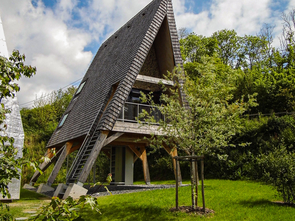 Cette friche commerciale située près du centre-ville de Falaise a été complètement réhabilitée dans un esprit vertueux : réemploi de matériaux (charpente métallique, radiateurs en fonte, sanitaires, portes, plancher bois, luminaires, système de récupération d'eau de pluie), prise en compte de l’existant, désimperméabilisation d’une partie des sols extérieurs, production d’énergie renouvelable grâce à 300 panneaux photovoltaïques produisant 1000 kWh/an…