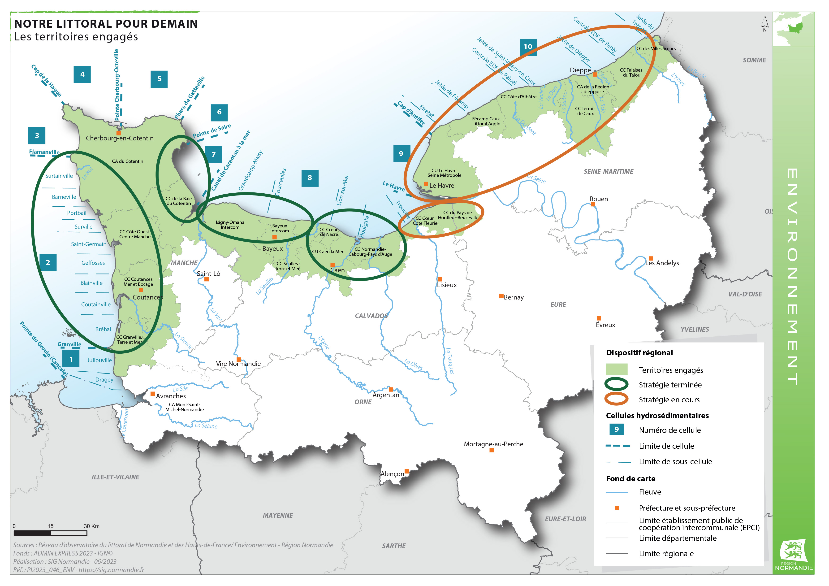De nombreux territoires littoraux normands sont d’ores et déjà engagés dans cette démarche et plusieurs stratégies locales sont déjà finalisées. La Région continue d’accompagner les collectivités en soutenant leurs projets pilotes d’adaptation au changement climatique, notamment les projets de recomposition territoriale. Ces projets doivent être pensés à une échelle cohérente et dans leur globalité (renaturation du site, développement de Solutions d'Adaptation Fondées sur la Nature, aide à l’acquisition foncière et au déplacement d’activités économiques et de services publics locaux), en lien avec les acteurs normands compétents sur ces domaines (Agences de l’eau, Conservatoire du Littoral, Etablissement Public Foncier de Normandie…).