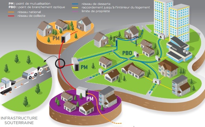 - Une zone d’initiative privée, où les opérateurs privés déploient les réseaux très haut débit sur leurs fonds propres
