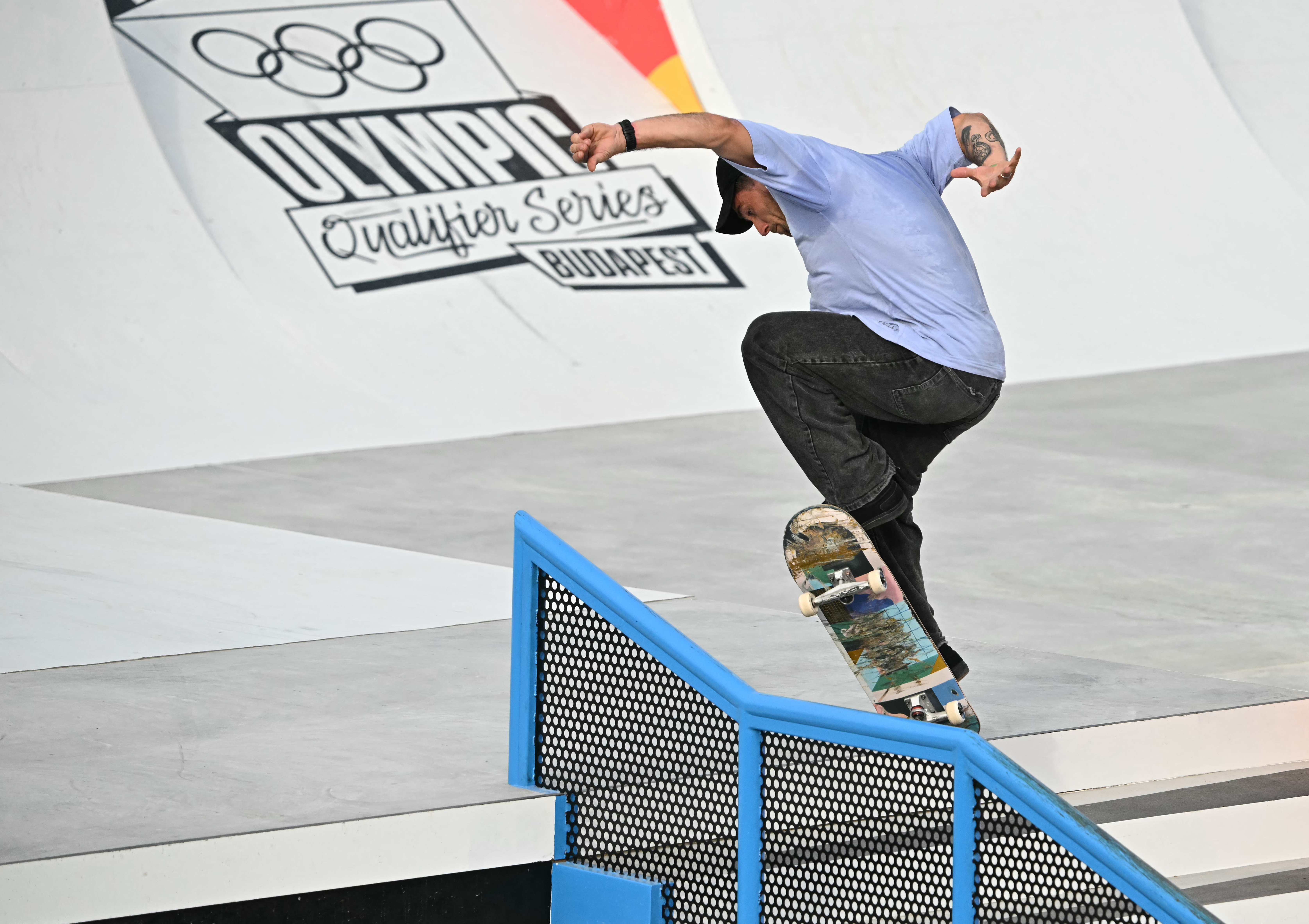 Joseph Garbaccio n'a pas réussi à se qualifier pour la finale lors du tour préliminaire des épreuves de street, lundi 29 juillet 2024 place de la Concorde. Il a terminé 20e (72.57), derrière ses compatriotes Aurélien Giraud (16e place, 143.71) et Vincent Milou (9e place, 252.78).