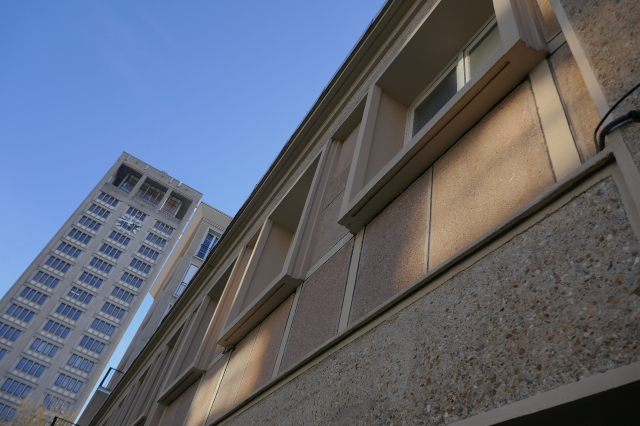 L’Hôtel de Ville est la structure la plus monumentale de l’ensemble : long de 143 m, il comporte en son milieu une tour de 18 étages haute de 70 m.