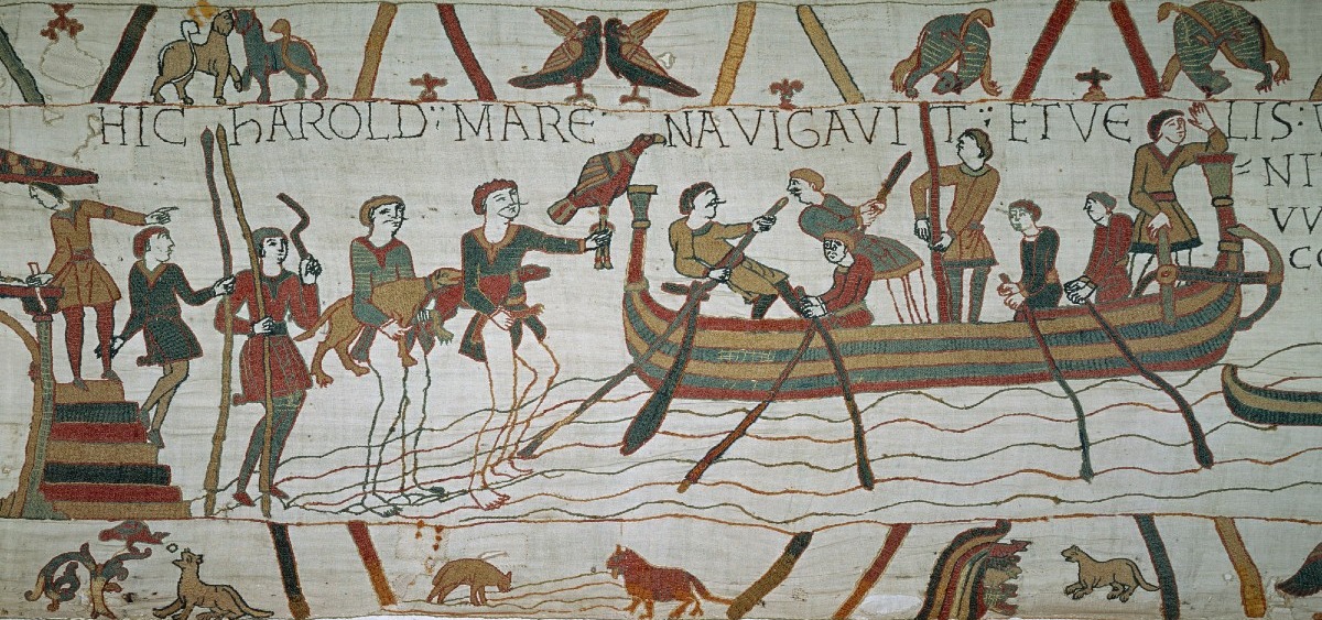 Broderie de laine réalisée au XIe siècle sur une toile de lin, la tapisserie de Bayeux relate sur près de 70 m de long et 50 cm de haut, la conquête de l’Angleterre en 1066 par Guillaume le conquérant, duc de Normandie.