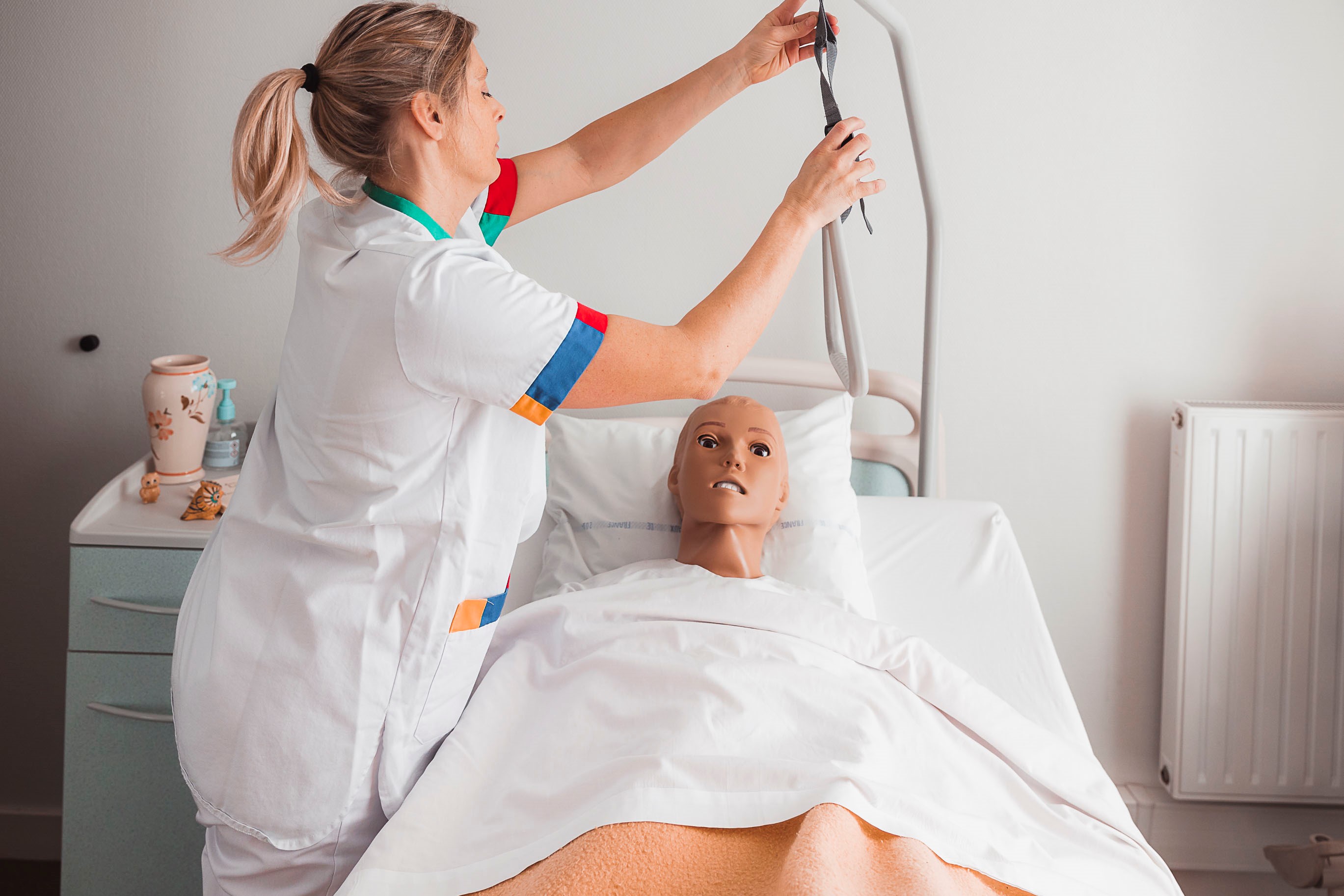 Après la fermeture de l’imprimerie, je suis retournée dans l’Orne où j’ai fait des petits boulots avant d’être embauchée dans une autre imprimerie. J’y ai passé 2 ans. Mon travail n’était plus du tout créatif, il consistait à vérifier des fichiers sur un ordinateur et je n’y trouvais aucun sens. J’avais l’impression que je ne servais à rien. J’ai alors décidé de faire la formation d’aide-soignante, prise en charge par la Région, à l’IFAS d’Argentan. J’ai demandé à bénéficier d’un projet de transition professionnelle (Transitions pro) et mon employeur a accepté. J’ai donc touché mon salaire durant toute ma formation (NDLR : le salaire continue à être versé par l’employeur qui se fait ensuite rembourser par Transitions pro).