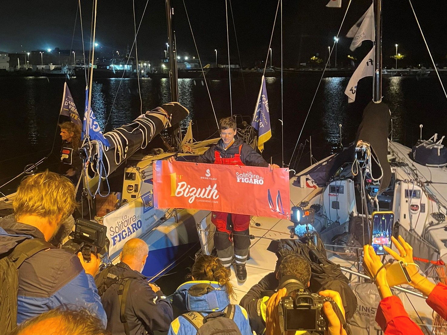 A ce jeu, au bout du suspense, c’est Guillaume Pirouelle qui l’emporte, seulement 3 minutes et 19 secondes devant Achille Nebout. La première victoire d’étape sur la Solitaire du Figaro pour le Figaro Région Normandie (3 e place d’Alexis Loison sur la 3e étape en 2020), la première de Guillaume Pirouelle pour sa première participation !